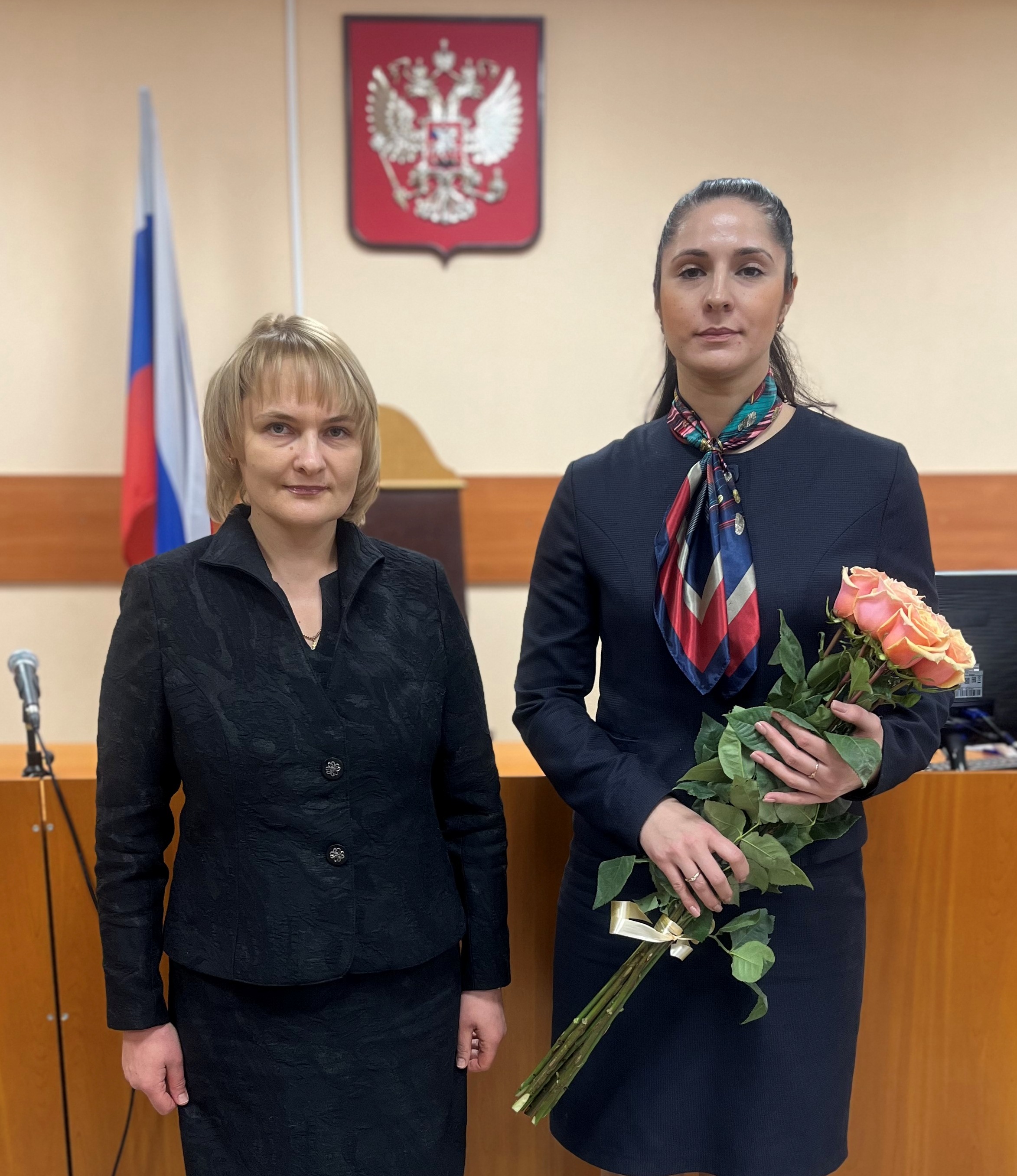 04.03.2025 в торжественной обстановке председатель Ясногорского районного суда Тульской области Филиппова Ю.В. представила коллективу Ясногорского районного суда Тульской области Вяселеву Гульнару Хамитовну. На мероприятии присутствовали представители правоохранительных структур, администрации Ясногорского района. От имени коллектива суда Юлия Викторовна поздравила Гульнару Хамитовну с назначением на должность и пожелала ей здоровья, удачи и профессиональных успехов, отметив, что должность судьи это наивысшая ступень карьеры любого специалиста. Работа судьи сложная, ответственная и трудоемкая. Присутствующие поздравили Гульнару Хамитовну с назначением и пожелали ей успехов в работе. (по информации Ясногорского районного суда Тульской области)